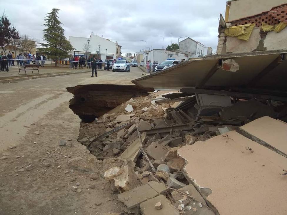 Lo ha contado la Cadena Cope de Ciudad Real. Sobre las 13 horas de este domingo se ha producido un hundimiento de tres viviendas y parte de la calzada en la calle Lope de Vega de la localidad ciudadrealeña de Tomelloso.