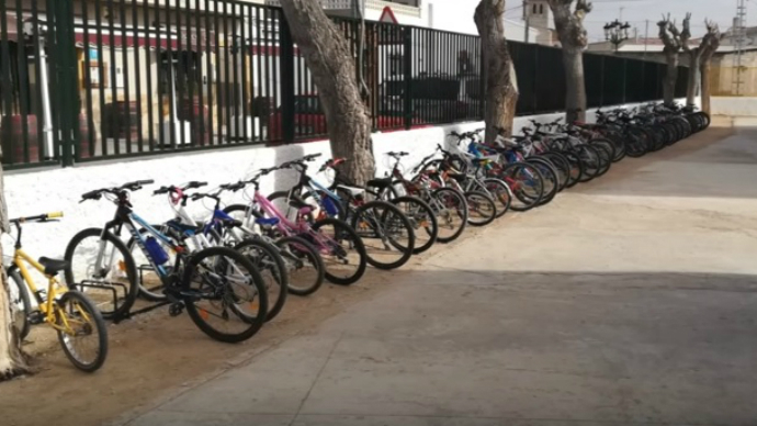 El centro ha incorporado aparcabicis y casilleros en el patio para que sus 217 alumnos y sus veinte profesores puedan dejar sus medios de transporte saludables en un lugar seguro.