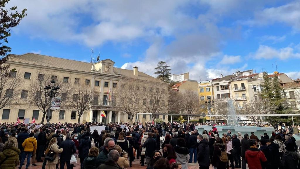 Cientos de personas se han concentrado este domingo en la Plaza de España de Cuenca para reivindicar el mantenimiento del tren convencional, en concreto la línea Madrid-Cuenca-Valencia, así como una infraestructura del siglo XXI.