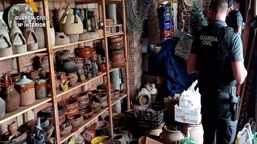 Algunas de las piezas se encontraban dispuestas sobre mesas de trabajo para su clasificación y restauración, mientras que otras se encontraban ya restauradas y expuestas en diferentes zonas del domicilio, según ha informado el instituto armado en un comunicado.