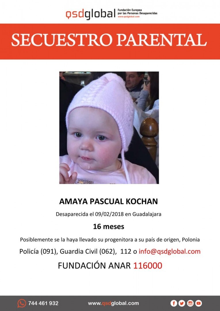 Además, comparte una foto de la desparecida de la Fundación Anar, que indica que la desaparición se produjo el pasado 9 de febrero y que "posiblemente se la haya llevado su progenitora a su país de origen, Polonia".