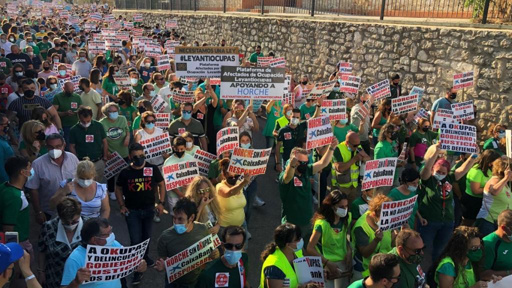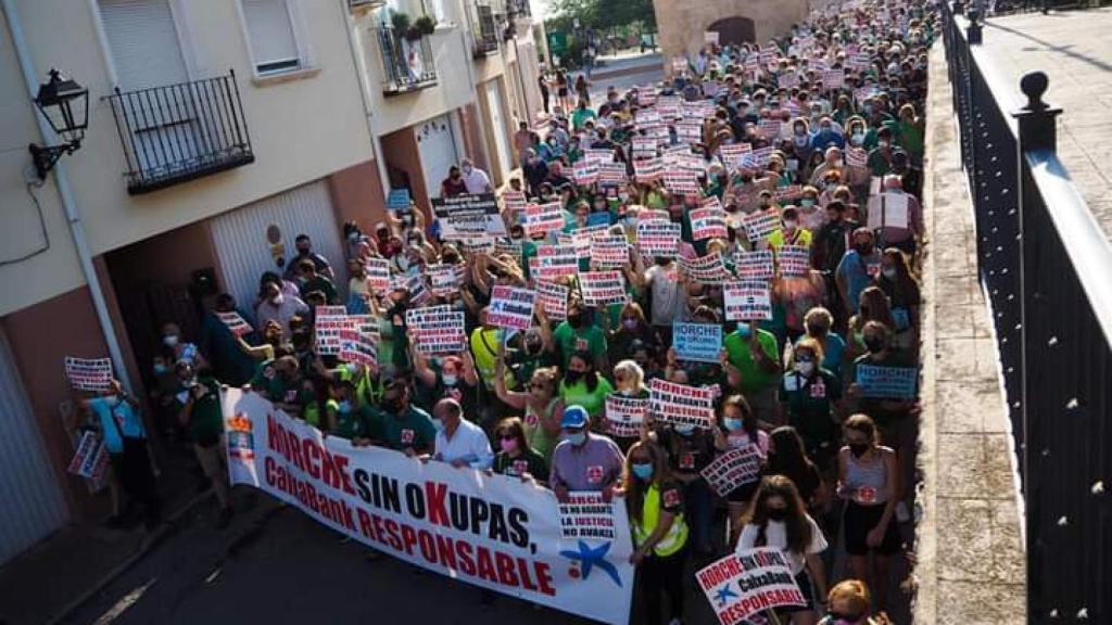 Entre 600 y 800 personas se han manifestado este sábado por la tarde desde la entrada de la localidad alcarreña de Horche hasta la Plaza del Ayuntamiento tras una pancarta en la que se leía: 'Horche sin okupas. CaixaBank responsable', para pedir que se ponga fin a la 'okupación' ilegal de viviendas en un municipio en el que hay al menos medio centenar de pisos ocupados, lo que a su vez ha comenzado a generar en la localidad algunas situaciones de incertidumbre e inseguridad.