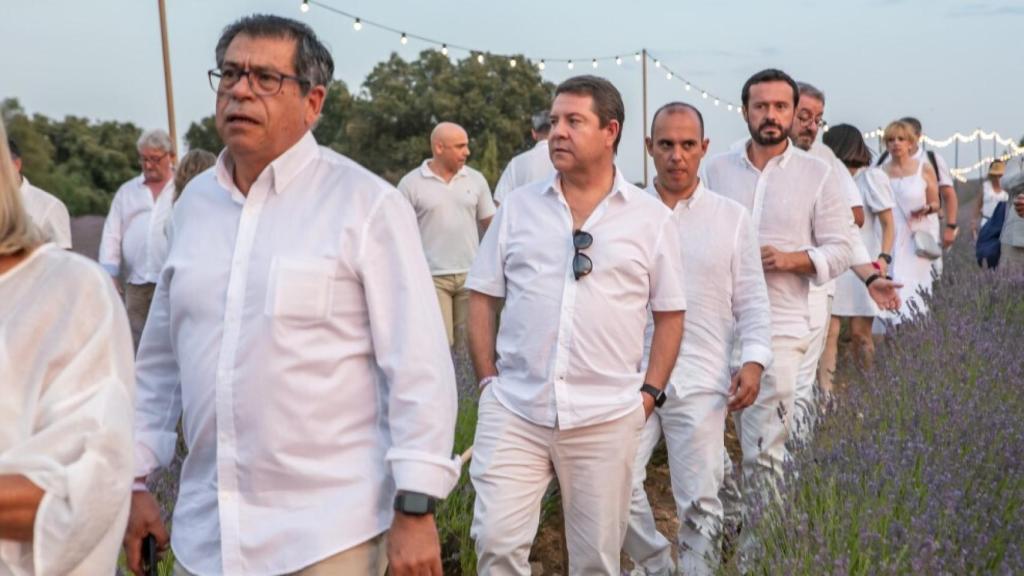 Completamente de blanco. Así se vistió, como manda la tradición, el presidente de Castilla-La Mancha, Emiliano García-Page, para asistir en la tarde-noche de este sábado a los conciertos organizados en Brihuega (Guadalajara) con motivo del Festival de la Lavanda, que llevaba dos años sin celebrarse debido a la pandemia de la Covid-19.