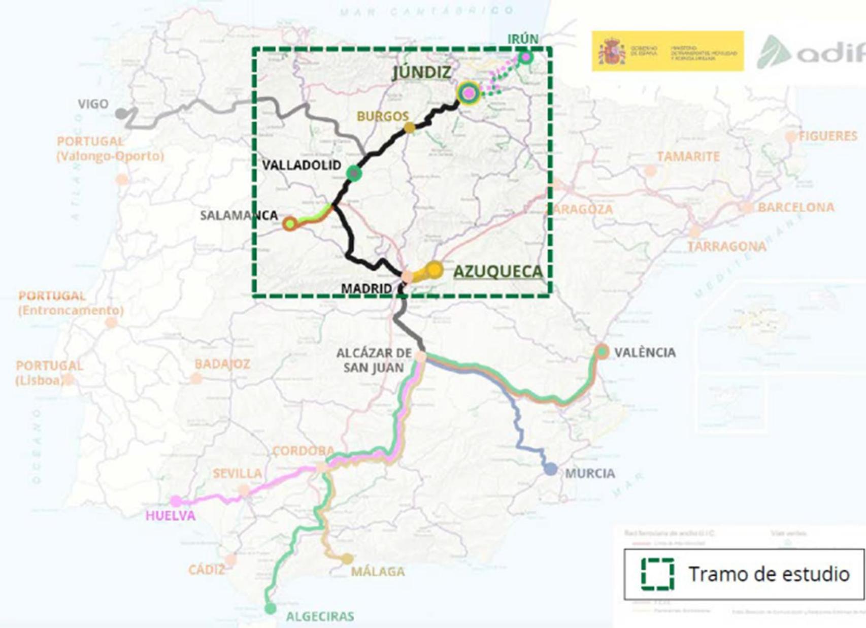 La actuación dará continuidad a los itinerarios Júndiz–Irún–frontera francesa, hacia el norte, y Algeciras–Alcázar de San Juan–Madrid, hacia el sur, además de vertebrar la Península de oeste a este, conectando Castilla y León con Levante gracias a la autopista ferroviaria ya operativa entre Madrid y Valencia.