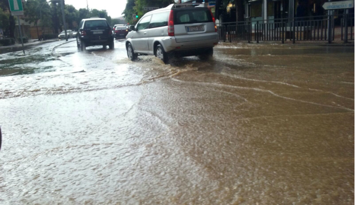 Las tormentas que están asolando en las últimas horas la meseta central están dejando imágenes dantescas en algunos puntos de la geografía regional.  En torno a las 18:00 horas de este jueves, una impresionante descarga de agua dejaba varias calles anegadas en Toledo.