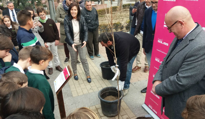 El alcalde de Mora, Emilio Bravo ha ejercido de anfitrión de Eduardo Sánchez, responsable del Área Social y Cultural de Seguros Soliss; Celedonio Morales, director de Relaciones Institucionales y Luis Martín, director de la oficina de Soliss en la localidad, en la plantación de un olmo autóctono resistente a la grafilosis en la Plaza de Mora, gracias al “Proyecto Olmo”, una iniciativa medioambiental de la Fundación Soliss que pretende recuperar uno de nuestros árboles más emblemáticos y amenazados.