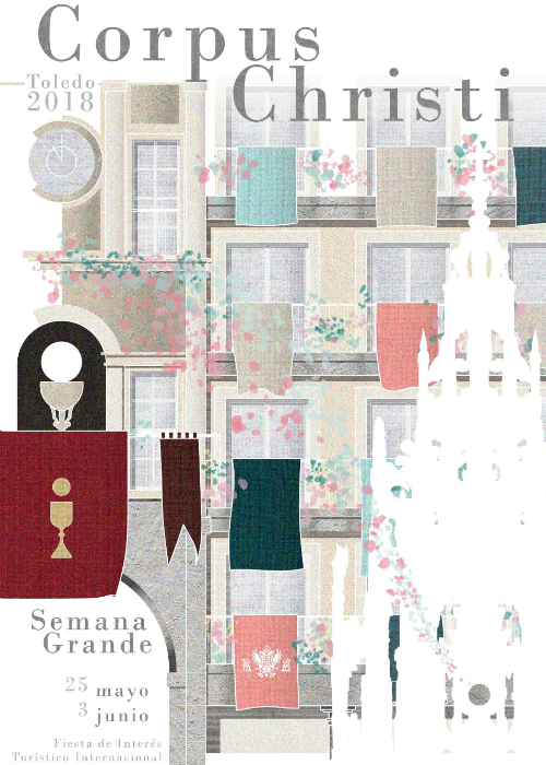 La Semana Grande del Corpus Christi de Toledo ya tiene cartel. Se trata de una obra gráfica de la arquitecta toledana Natalia Martínez en la que representa la Custodia de Arfe en la plaza de Zocodover y los reposteros tradicionales en los balcones, así como el Arco de la Sangre y una lluvia de pétalos.