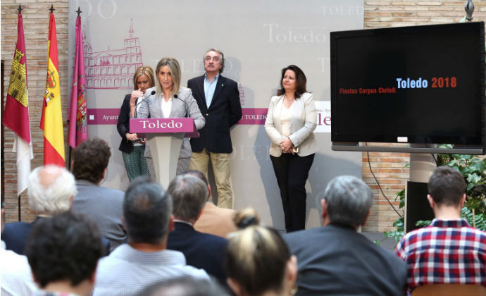 La alcaldesa ha señalado que se mantienen algo que "gusta mucho" en la ciudad, como son las verbenas, que este año serán tres: el 30 de mayo en la Plaza del Ayuntamiento, el 1 de junio en el recinto ferial La Peraleda y el 2 de junio en la Plaza de Zocodover. Además, ha anunciado que, un año más, la ciudad contará con un "evento multitudinario" y que es "muy demandado por los jóvenes" como es el concierto Máxima Corpus 2018, el 26 de mayo en el recinto ferial La Peraleda. Los grupos locales de la ciudad también tendrán su espacio en la celebración del Corpus Christi, destacando las actuaciones de Candela y Son, Guateque de la Década o espectáculos de zarzuela, así como un concierto "más íntimo" con el Trío Scarlatti de la Casa de la Moneda.