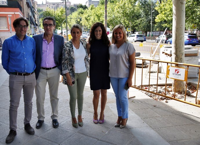 Acompañada de las concejalas Noelia de la Cruz y María Teresa Puig, y junto a Carlos Molina, de la asociación de comerciantes del barrio, miembros de la asociación de vecinos y personal técnico de la obra, la alcaldesa ha realizado un recorrido por la zona, que, con una inversión superior al medio millón de euros, incluye intervenciones en los alcorques, acerado, iluminación, arbolado y red de abastecimiento, aparte de la renovación del asfalto y de la mediana.