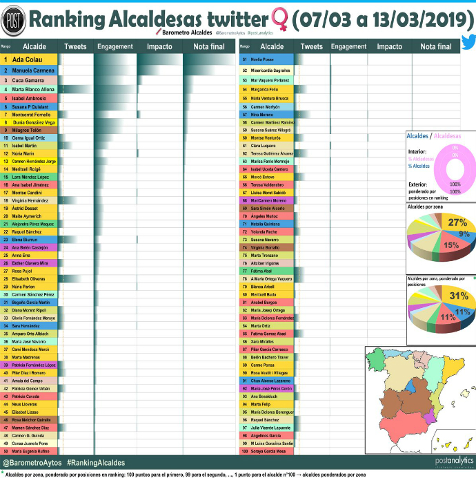 Según la cuenta @BarometroAytos, Tolón fue la novena alcaldesa del país con más éxito en Twitter durante la semana del 7 al 13 de marzo.