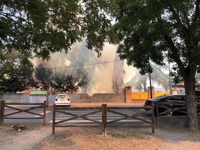 Incendio de pastos en el camping del Circo Romano de Toledo