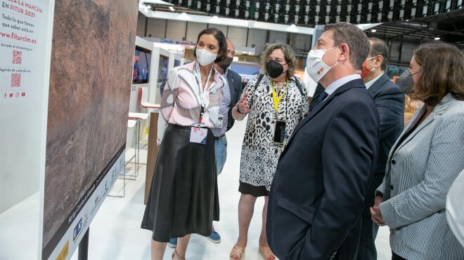 Después, la ministra de Industria, Comercio y Turismo, Reyes Maroto, ha visitado junto al presidente regional, Emiliano García-Page, al estand de Castilla-La Mancha en Fitur, donde ha conocido de primera mano la apuesta del Gobierno de Castilla-La Mancha para la promoción de su oferta turística.