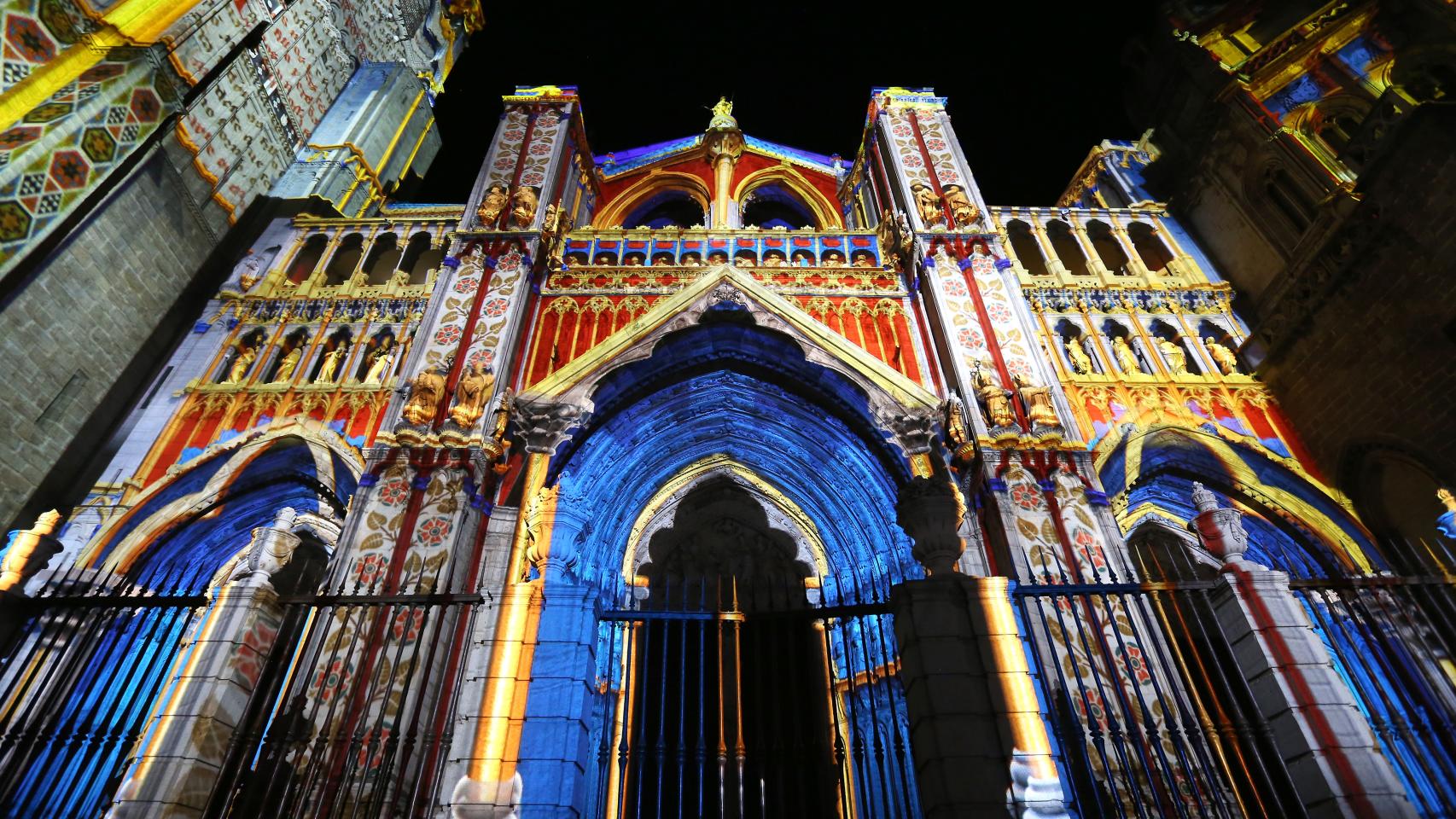 Los toledanos han podido disfrutar de coloridas imágenes proyectadas sobre la fachada de la Catedral a través de la técnica del 'video mapping', acompañadas de narraciones y músicas creadas para la ocasión.
