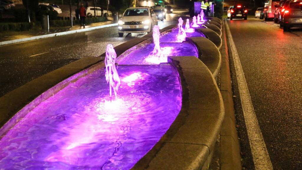 La nueva iluminación de la fuente permitirá utilizar numerosos colores y el primero de los elegidos ha sido el violeta con motivo del Día Internacional de la Erradicación de la Violencia contra las Mujeres, que se celebra este 25 de noviembre.