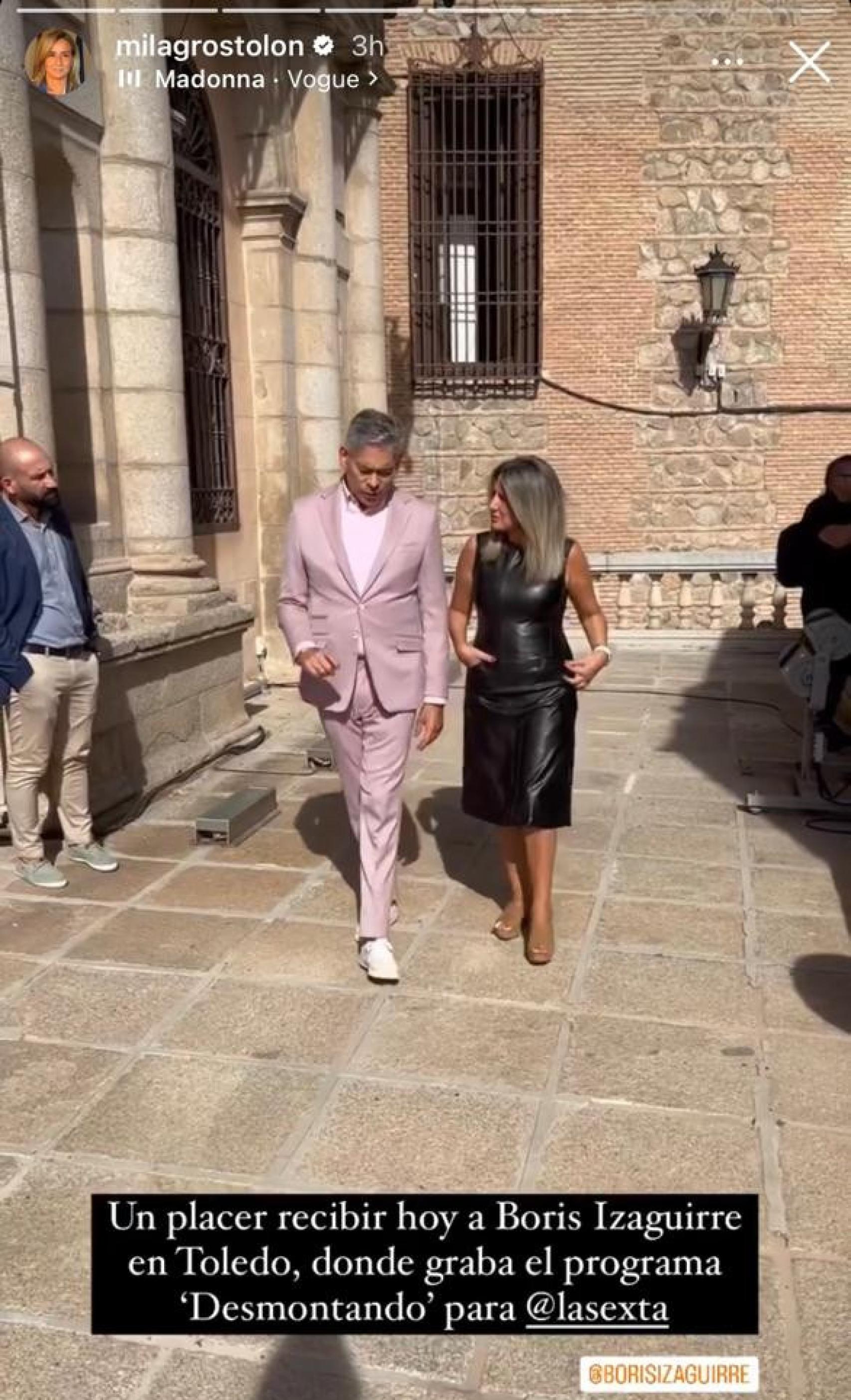 La primera edil ha compartido a través de la red socal Instagram un vídeo con el presentador visitando las instalaciones del Consistorio. "Un placer recibir hoy a Boris Izaguirre en Toledo, donde graba 'Desmontando' para LaSexta", ha publicado en stories.