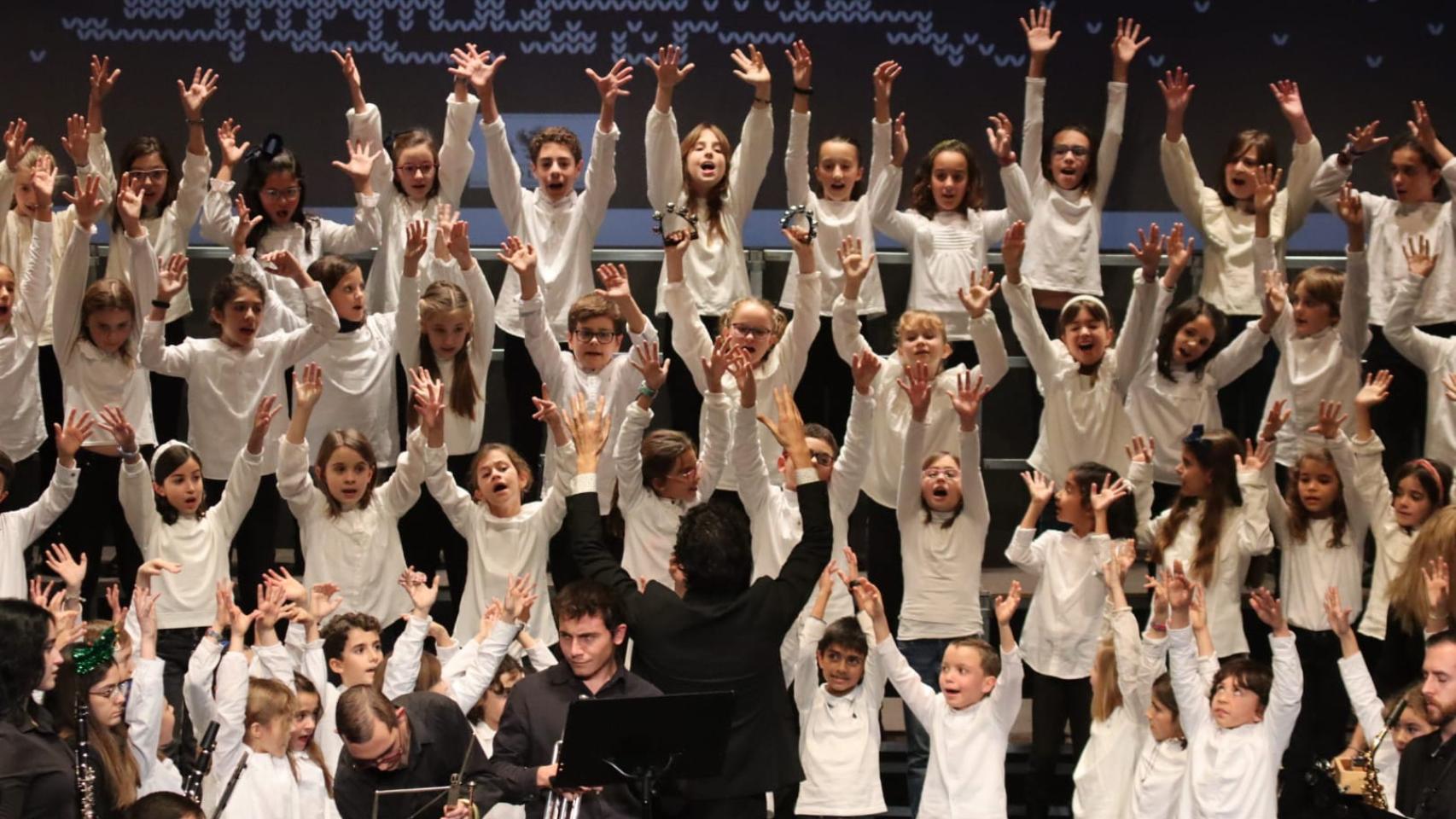 El recital comenzaba con un cuarteto de cuerda formado por profesores y profesoras de la escuela que han interpretado un popurrí de villancicos tradicionales, para dar paso al coro de voces blancas y a los temas ‘Linda noite’ y ‘Sombreiro de palla’. Los villancicos populares españoles, portugueses, latinoamericanos y gallegos se han sucedido durante la casi hora y media de espectáculo.