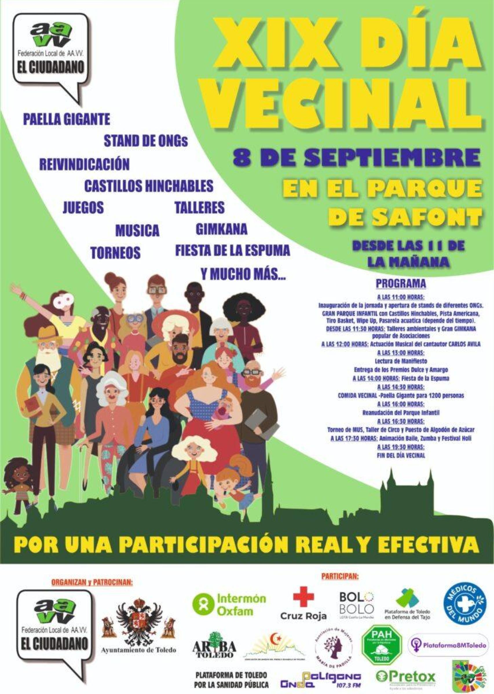 La ciudad de Toledo celebrará el próximo domingo 8 de septiembre la XIX edición del Día Vecinal, un encuentro festivo organizado por la Federación Local de Asociaciones de Vecinos 'El Ciudadano'.