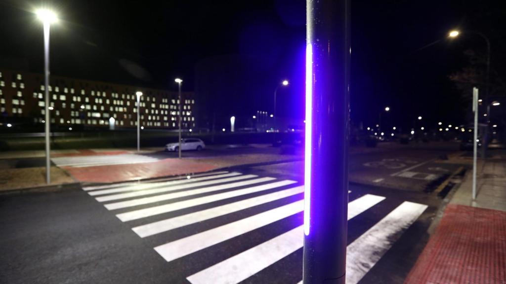 La baliza instalada cuenta con un sistema LED y un detector de presencia que aumenta la intensidad de la luz cuando un peatón se dispone a cruzar, lo que mejora la visibilidad y alerta a los conductores.