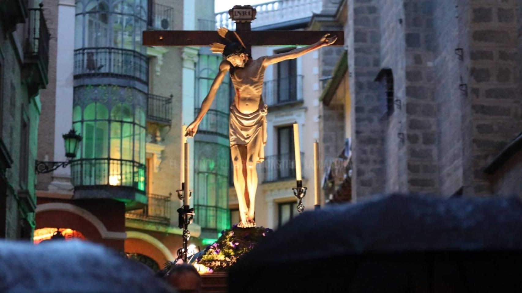La imagen que sí pudo respirar aire fresco fue el Santísimo Cristo de la Esperanza cuya procesión partió desde la Iglesia Parroquial de San Andrés a la hora programada, las 23:30. La lluvia dio la tregua suficiente para completar el Vía Crucis por el Casco marcado por la presencia del arzobispo de Toledo y las novedades de la música de capilla y el adorno floral.