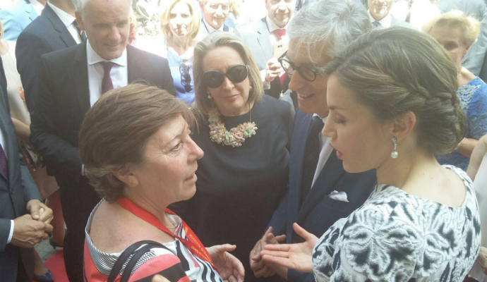 Además, la Reina tampoco ha dejado pasar la ocasión para despachar con otros "colegas" de profesión como Carmen del Riego.