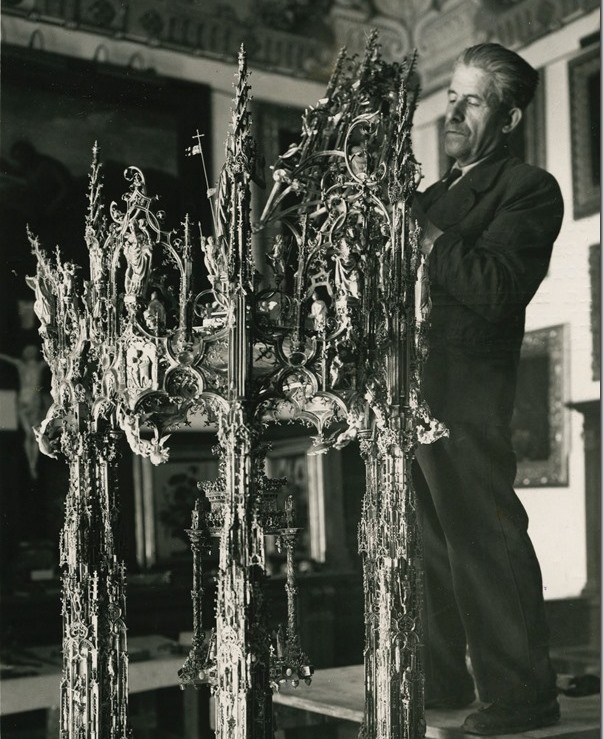 Además, dos de sus fundadores tuvieron una especial relación con la Fiesta Mayor de Toledo: el genial Julio Pascual (artista del hierro de fama internacional) fue el encargado de volver a montar la Custodia de Arfe en 1939 tras ser desmontada durante la guerra civil para su traslado al Banco de España (hecho que finalmente no se produjo), mientras que el excepcional vidriero y hojalatero Daniel Moragón realizó decenas de los faroles que durante décadas han adornado el recorrido de la procesión, muchos de los cuales se siguen colocando año tras año en en nuestros días.