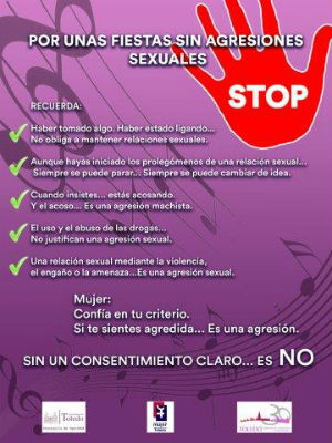El Consejo Local de la Mujer de Toledo, organismo dependiente de la Concejalía de Igualdad, ha lanzado una campaña de prevención y sensibilización contra las agresiones sexuales durante las fiestas del Corpus y las fiestas de los barrios de nuestra ciudad bajo el lema ‘Por unas fiestas sin agresiones sexuales”.