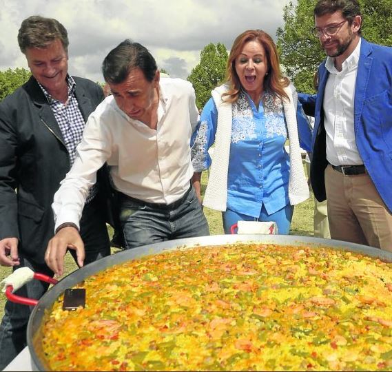 El dirigente popular intentaba auto fotografiarse junto a la paella delante de los periodistas cuando el móvil se le cayó sobre el arroz. Por suerte para él ya estaba seco.