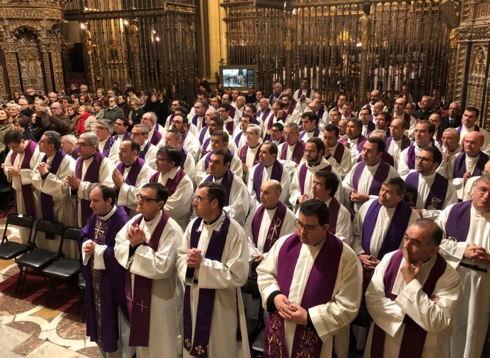 Luego ha sido el arzobispo de Toledo, Braulio Rodríguez, el que ha presidido la misa funeral en sufragio por su alma. Con Rodríguez han concelebrabado la misa el arzobispo de Santiago de Compostela, Julián Barrio; el obispo de León, Julián López; el obispo de San Sebastián, José-Ignacio Munilla; el obispo auxiliar de Toledo, Ángel Fernández; los obispos eméritos de Segovia y Orihuela-Alicante, Ángel Rubio y Rafael Palmero, además del cabildo primado y unos 150 sacerdotes.