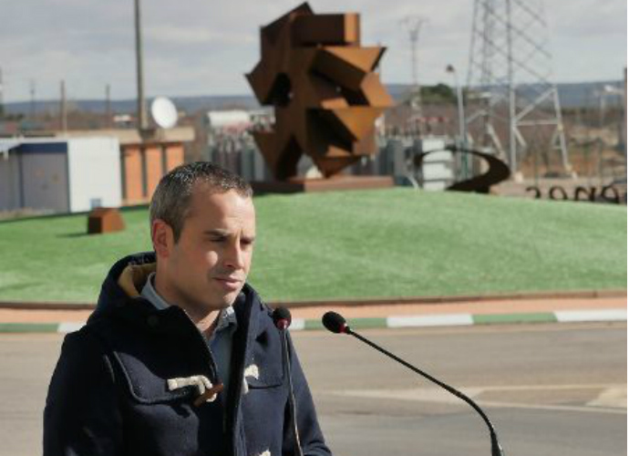 A continuación tomó la palabra Juan Sánchez Borox, quien explicó el significado de la escultura: "Dado que la ubicación de la obra iba a ser en la rotonda ubicada en el Polígono Industrial, quise partir desde la unidad de una pieza básica que en este caso es el triángulo que se repite en un conjunto y que de manera simple carece de sentido, pero que conjuntamente cobra un significado o intención a pesar de ser una figura abstracta. Su forma de corona, de mecanismo o incluso de noria, hace referencia a ese carácter industrial del polígono".