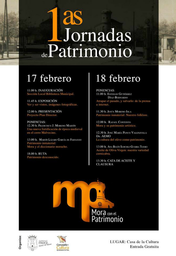 Por todo ello se han organizado, en la Casa de la Cultura, las I Jornadas de Patrimonio en Mora, con el objetivo de promocionarlo entre todos los vecinos y la población en general, que se conozca, se ponga en valor y se respete y proteja entre todos.