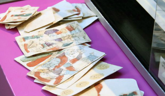 Y cuatro piezas de ocio del siglo XVII -una peonza, una baraja y dos pelotas de cuero- hallados en la restauración de la tarima del pasillo de acceso a la Sala Capitular del Ayuntamiento.