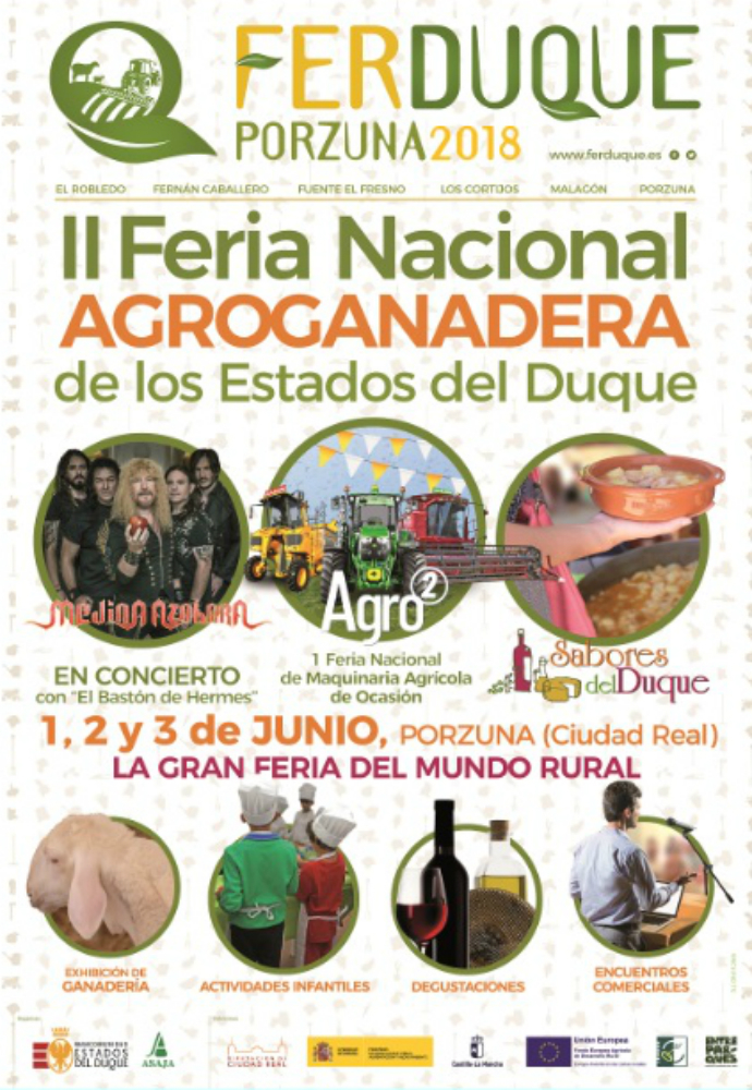 La música será una de las propuestas lúdicas de la II Feria Nacional Agroganadera de los Estados del Duque (FERDUQUE), la gran feria del mundo rural que se celebrará del 1 al 3 de junio en Porzuna organizada por la Mancomunidad Estados del Duque y ASAJA. Siete conciertos gratuitos, de estilos musicales muy diferentes, llenarán de ritmo y talento los seis municipios que integran los Estados del Duque.