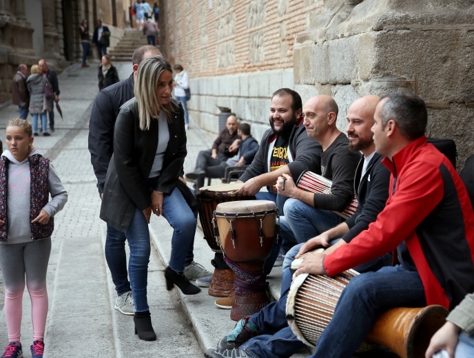 La plaza del Ayuntamiento ha acogido este viernes una “Quedada de Artistas” organizada en el marco del documental “Artoledo” que el Consistorio está elaborando para promocionar la ciudad a través de los jóvenes creadores, una iniciativa impulsada por la alcaldesa, Milagros Tolón, que ha visitado a los jóvenes que han participado en este encuentro.