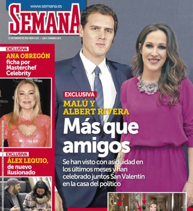 Impactante este miércoles el titular de 'Semana', que asegura que Malú y Albert Rivera son algo más que amigos.