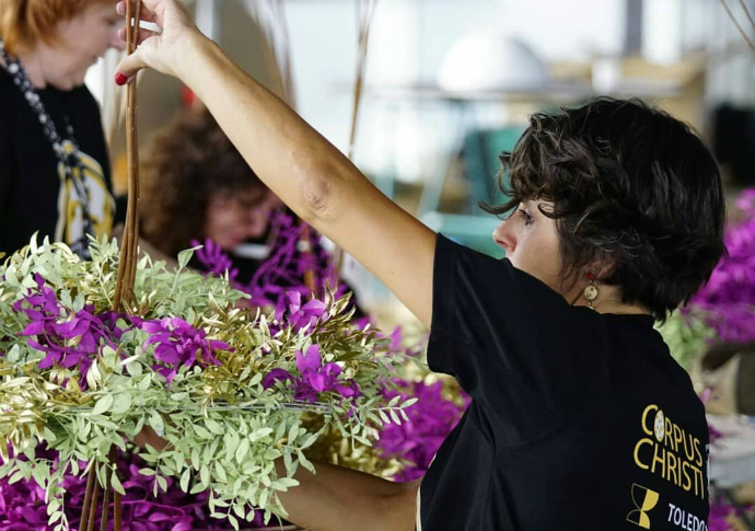Una labor que, según cuenta a Efe la presidenta de la Asociación provincial de floristas de Toledo, Deborah Rodilla, ha comenzado este lunes a las 23:00 horas por las calles Sillería y Alfileritos, y que se extenderá hasta el propio jueves 19 de junio por la mañana para que todo esté listo antes de la salida de la Custodia de Arfe que, un año más, vestirá de gala la ciudad para celebrar su Fiesta Grande.
