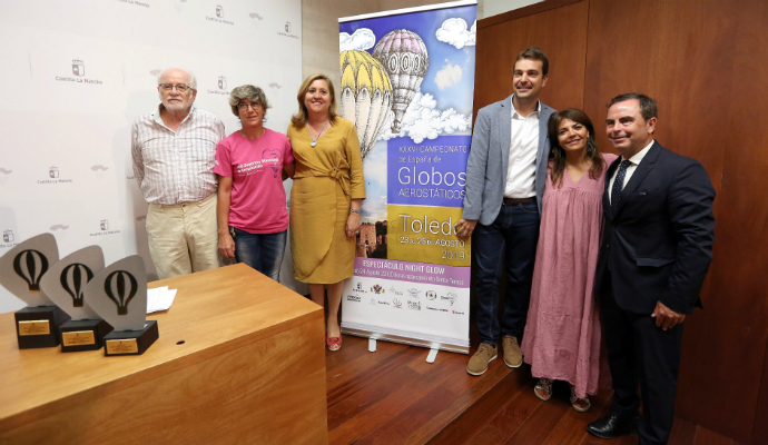 Diecisiete pilotos de toda España participarán desde el 23 al 25 de agosto en Toledo en el XXXVI Campeonato de España de Globos Aerostáticos en la primera ocasión que la capital castellanomanchega acoge esta competición deportiva. Este campeonato nacional ha sido presentado este martes en rueda de prensa por la consejera de Educación, Cultura y Deportes de Castilla-La Mancha, Rosa Ana Rodríguez; el concejal de Deportes y Juventud del Ayuntamiento de Toledo, Pablo García; y la presidenta del Club Deportivo Aeroespacial Manchego, María Luisa Cabañero.