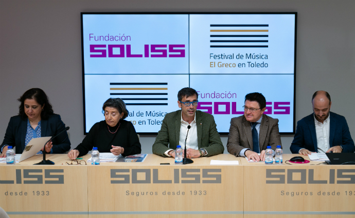 La sede central de Soliss Seguros y su Fundación acogió la rueda de prensa donde se hizo balance de la edición de 2019, con la presencia de miembros de las instituciones colaboradoras: Paloma Acuña, presidenta de la Real Fundación de Toledo; Juan José Montero, director artístico del Festival; Teo García, concejal de Cultura del Ayuntamiento; Fátima Guadamillas, vicerrectora de la UCLM; y Eduardo Sánchez Butragueño, director general de la Fundación Soliss, entidad patrocinadora del Festival.