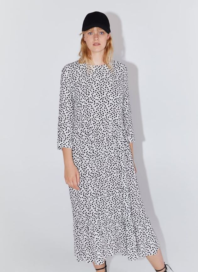 Zara lo ha vuelto hacer y esta primavera/verano hay una prenda que está por todas partes. Se trata de un vestido blanco de lunares, de manga larga, corte recto y volante en la parte inferior que ha hecho las delicias de las compradoras de la marca.
