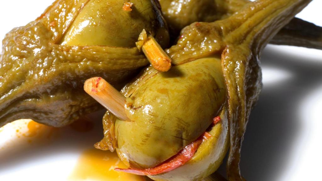 La fermentación del vinagre, el aceite de oliva, la sal, cominos, ajos, pimentón y agua, durante un periodo de catorce días, da origen a este aperitivo de sabor exclusivo, bajo en calorías y rico en fibra. Además, suele sofisticarse rellenándolas con pimiento rojo.