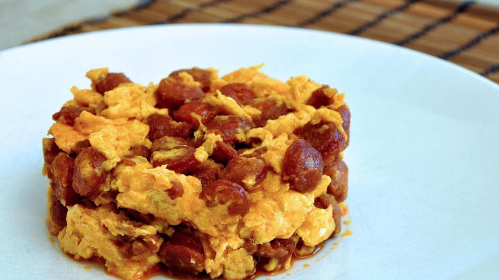 Su preparación consiste en un preparado de huevos revueltos con chorizo, jamón y tocino. Es un plato “capaz de alegrar a cualquier duelista y reparar a todo quebrantado”.