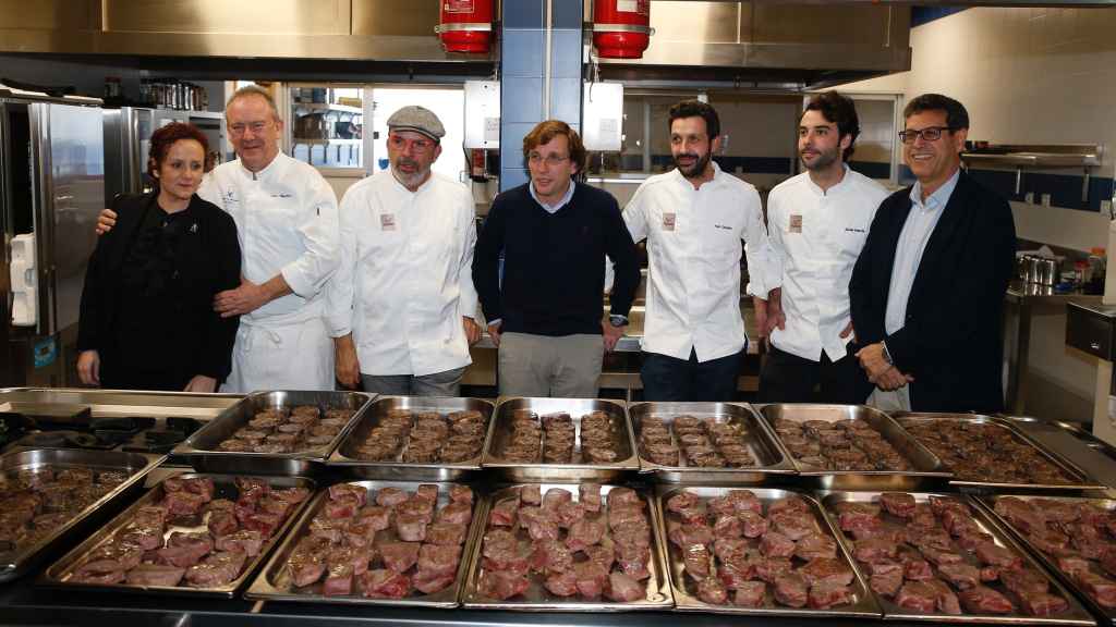 El Ayuntamiento de Madrid y la Organización Interprofesional de la Carne de Vacuno (Provacuno) han celebrado este miércoles una comida solidaria para los usuarios de cuatro centros de acogida para personas sin hogar de la capital. Las comidas solidarias, que han sido elaboradas por ocho chefs con estrella Michelín de Madrid, se han llevado a cabo en los Centros Municipales para Personas Sin Hogar, San Isidro, Puerta Abierta y Juan Luis Vives, además de en la Fundación José María de Llanos.