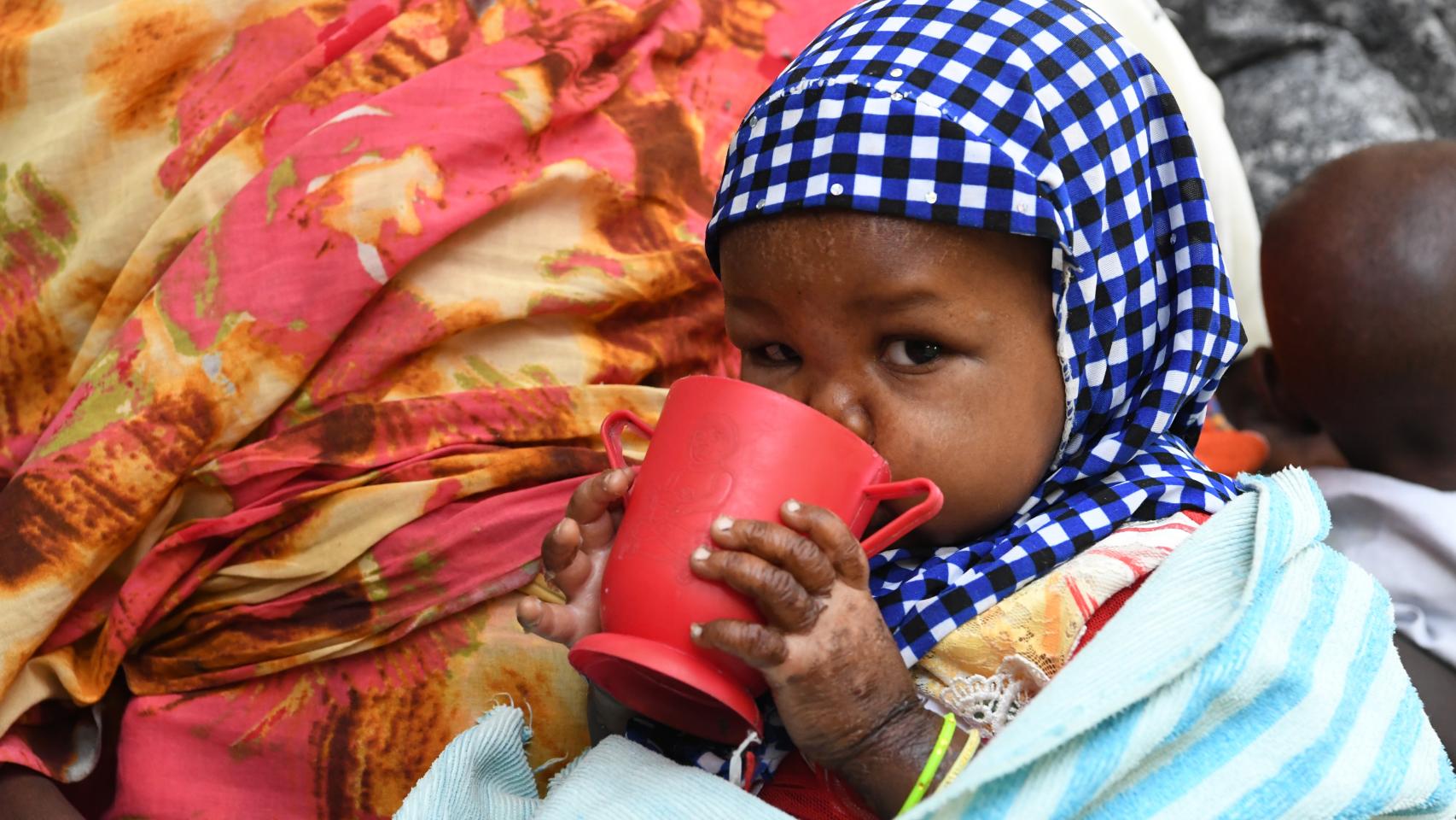 Un bebé tomando un suplemento nutricional en el Hospital Provincial de Abeche, en el este de Chad.