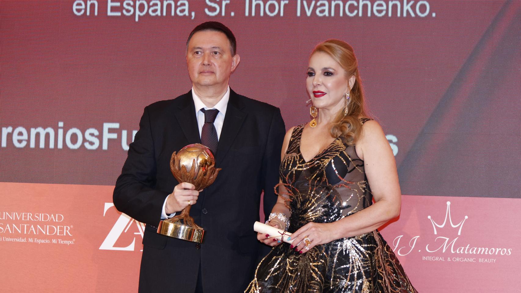 El Excmo. Sr. D. Ihor Ivanchenko, primer secretario de la embajada de Ucrania en España fue el encargado de recoger el galardón de manos de Dña. Emilia Zaballos, presidenta de la Fundación Zaballos. Fundación Zaballos Hotel Intercontinental, Madrid