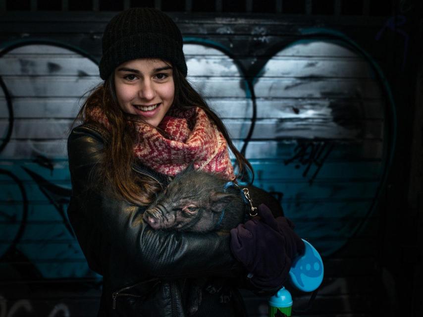 Raquel Delgado del Mazo y su hermano pequeño tienen un cerdito “minipig” llamado Rocky. La elección de esta mascota se debe a que tiene alergia al pelo de los animales excepto a la de su cerdito. Tiene cuatro meses y es muy listo. Ya hace sus cosas en los lugares destinados para ello. Sus padres quienes lo compraron en una granja de Cantabria, están encantados.