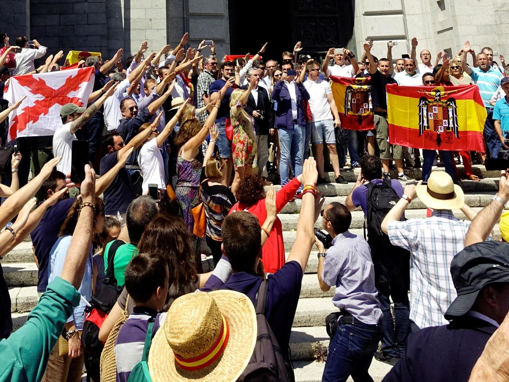 Miles de personas acuden al Valle de los Caídos para mostrar su rechazo a la exhumación de Franco