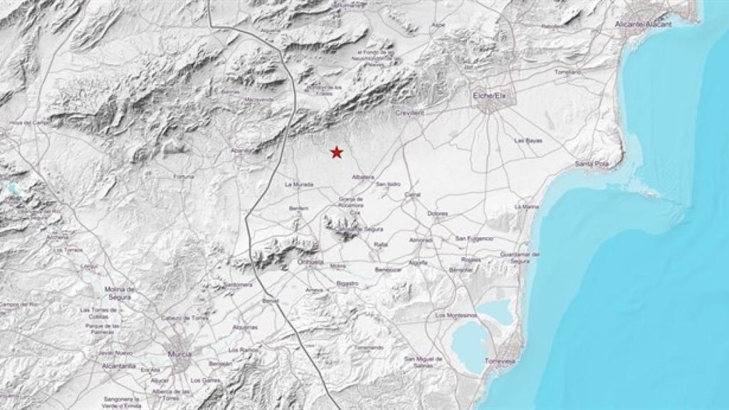 El temblor, que se ha notado en varios puntos del sur de la provincia de Alicante y Murcia, se ha producido sobre las 16.40 horas de este lunes en un punto del término municipal alejado del núcleo urbano.