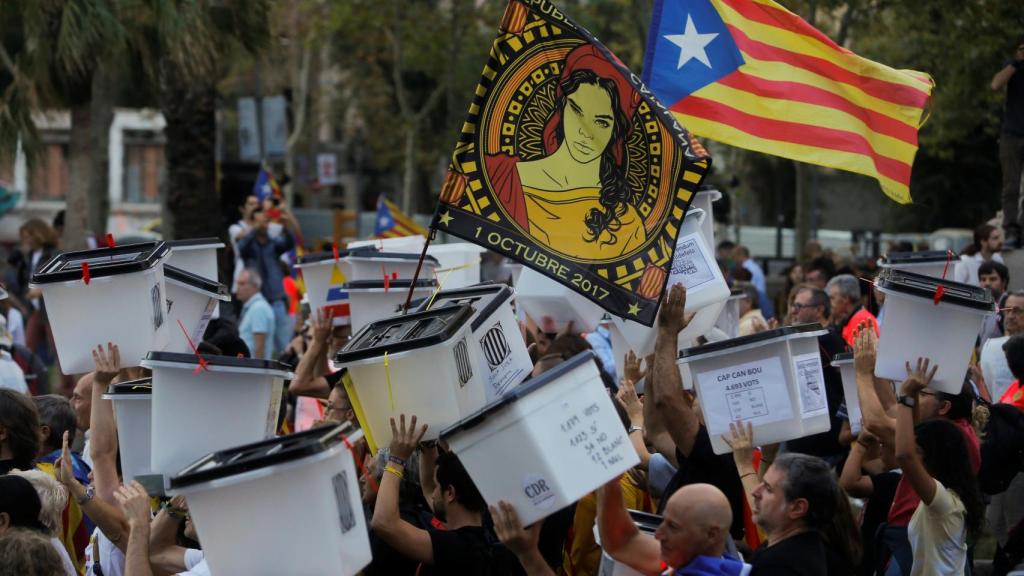 Las urnas utilizadas en el 1-O encabezan la manifestación en Barcelona