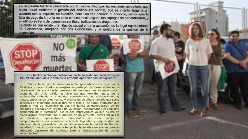 "De la prueba practicada ha resultado acreditado que el día 30 de junio de 2015, con ocasión de la ejecución judicial de un desahucio, con lanzamiento de la inquilina de una de las viviendas de protección, por falta de pago de renta, se personó en el lugar la alcaldesa y dos concejales de la corporación, apoyando a un grupo que tenía como objetivo obstruir la acción de la Justicia en ejecución de dicho lanzamiento", incide el juzgado.