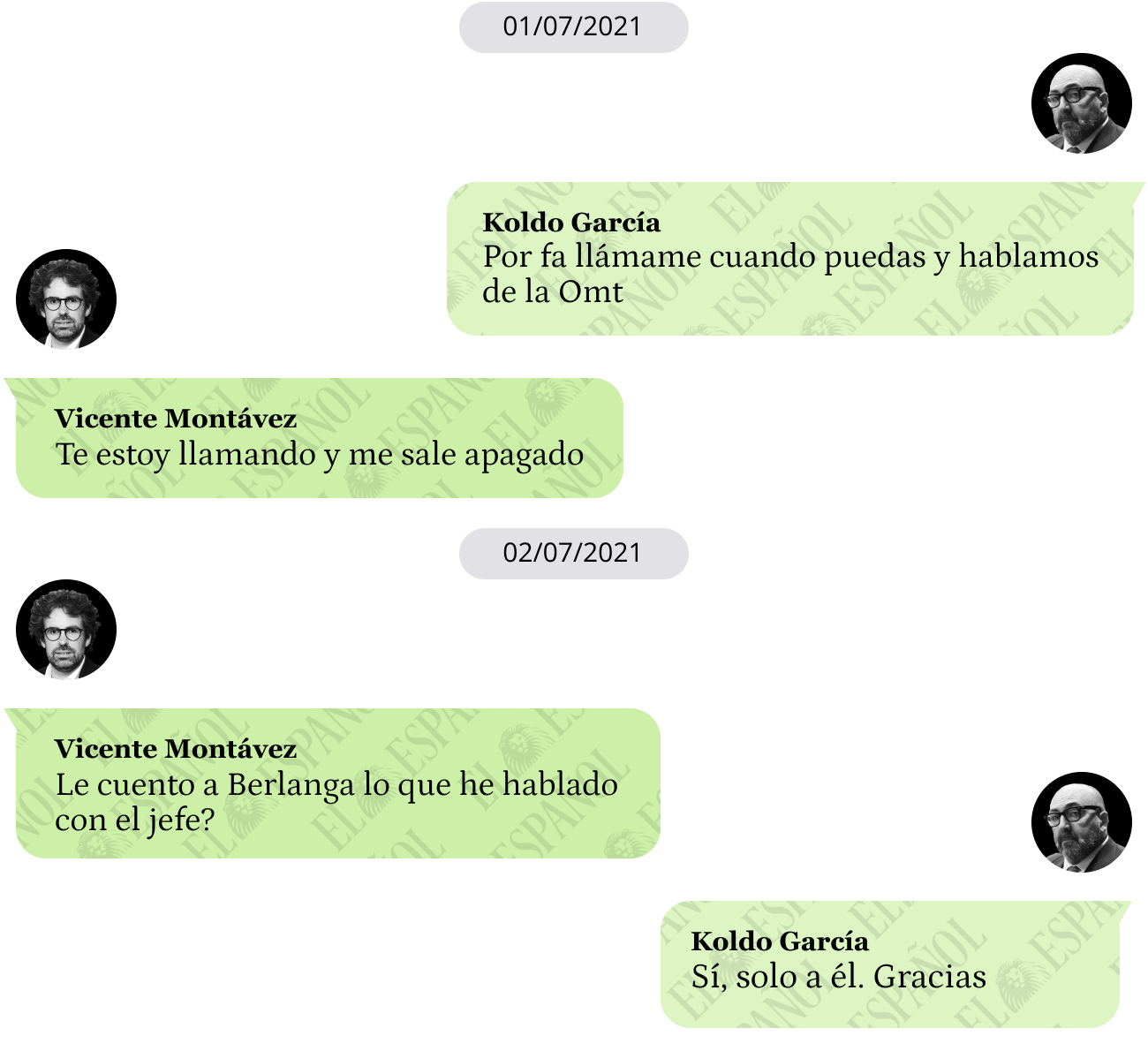 Finalmente, logran hablar. Al día siguiente, Montávez escribe al asesor de Ábalos: "¿Le cuento a Berlanga lo que he hablado con el jefe?".