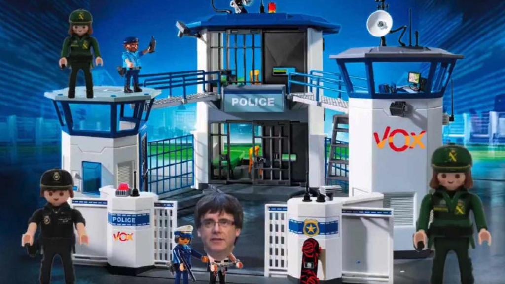 Asimismo, "para luchar contra los golpistas", Ortega Smith pide "la prisión de Playmobil para Puigdemont, con el set de la comisaría en Bruselas". La petición del dirigente de Vox va acompañada de una imagen de una cárcel de juguete donde aparece un muñeco con el rostro del expresidente catalán.